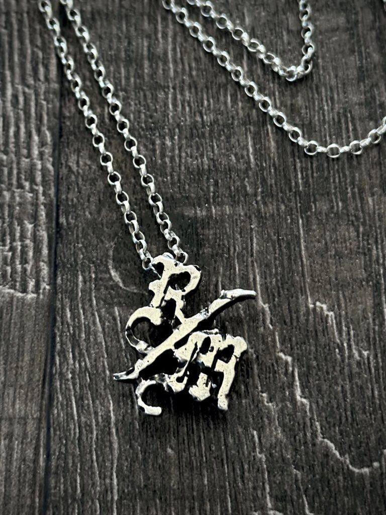 表面にはR/Mのロゴをあしらい、裏面のチェーンを通す部分は旧約聖書の創世記 "ノアの箱舟" に登場する鳩が運んできた希望の枝をモチーフとしている。